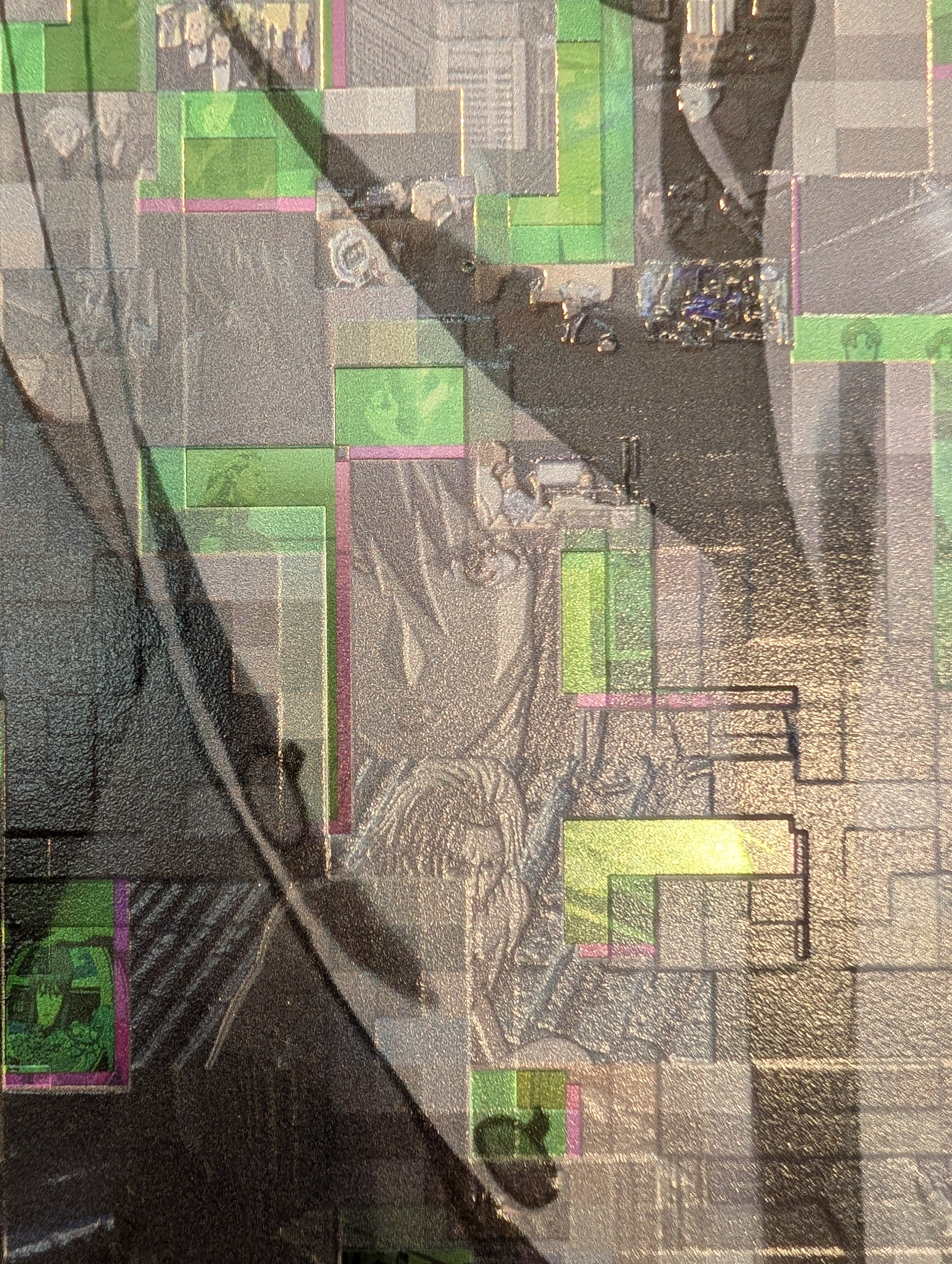 Every piece has depth thanks to a layered printing process on metal canvas, with up to 32 layers. Most are extremely detailed and impressive. The effect is especially striking when you move around a little bit to see how the light catches on differently depending on your position.